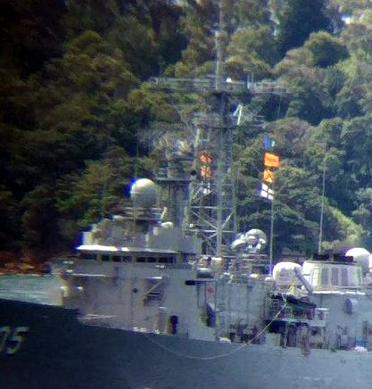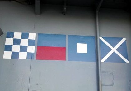 UKW Rufzeichen sieht man manchmal als Flaggen oder auch aufgemalt auf den Rumpf, hier das Rufzeichen "NEPM" der ISS Iowa: